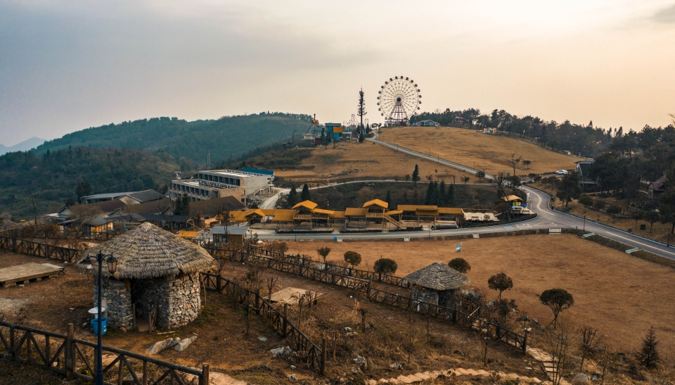 欢喜坪国际旅游度假区位于四川省达州市大竹县庙坝镇白槽村和长乐村,地处华蓥山脉达州(大竹和渠县)与广安(前锋)交汇处。该度假区规划占地面积超过7000亩,平均海拔约1000米。项目以市场需求为导向,依托华蓥山的自然生态资源,目标是吸引川、渝、陕的都市休闲人群和自驾游市场。度假区的重点是山地运动、主题体验、生态康养和产业聚集,力求打造成川东北地区的山地休闲体验地。这里集合了生态观光、滑翔伞基地、攀岩基地、野外露营基地、集装箱酒店和牧场庄园等多种旅游项目,旨在为游客提供一个旅游兴旺、产业兴盛、生活幸福的山地生态旅游度假体验。